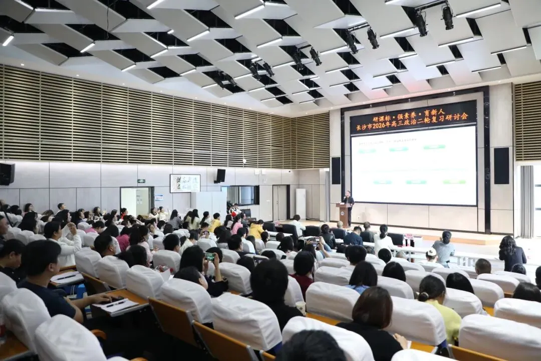 4月8日,长沙市2026届高三政治二轮复习研讨会在我校麓山楼301报告厅举行。本次研讨会以“研课标·强素养·育新人”为主题,全市200余名政治教师共研复习策略,共促教学提质。