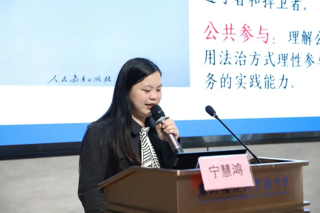 龚美霖围绕《我国的生产资料所有制》从教学背景、教学目标、教学过程、教学反思四个方面进行说课。她以环环相扣、逻辑严密的设计,深度融合“十五五”规划的时政热点,分享了考点整合、逻辑建构与答题指导的实操策略。