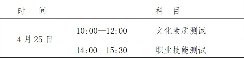 3.考试方式:文化素质测试及职业技能测试均采用合卷笔试的方式进行。