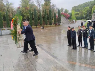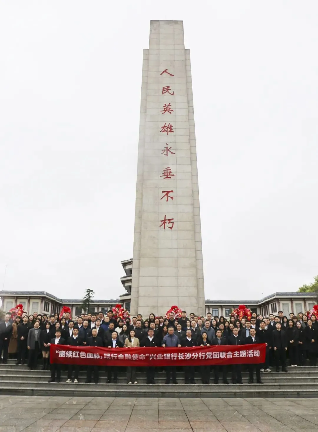 长沙分行机关、同城党团组织在湖南革命陵园开展祭英烈活动。4月3日,兴业银行长沙分行机关、同城党支部和团支部的广大党员、团员共计130余人,在湖南革命陵园举行了隆重的敬献花篮仪式。活动伊始,伴随着庄严的国歌奏响,在人民英雄纪念碑下,全体肃立,面朝人民英雄纪念碑默哀,表达对革命先烈的崇敬之情。随后,伴随着《献花曲》低沉的旋律,党员、团员代表向革命先烈敬献花篮。长沙分行党委书记、行长任洪斌同志缓步向前,轻轻整理花篮缎带。最后,全体人员缓步绕行,瞻仰人民英雄纪念碑,依次将鲜花敬献在人民英雄纪念碑前,表达对革命先烈的崇高敬仰和哀思之情。