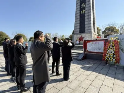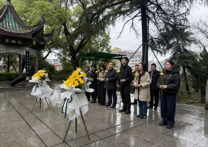 岳阳分行党委开展清明祭英烈主题党日活动。4月3日,岳阳分行党委在岳阳市黄茆山人民英雄纪念碑,组织开展清明祭英烈主题党日活动,分行下辖3个党支部共同参与。活动现场氛围庄严,分行党委带领各党支部成员,向人民英雄纪念碑敬献花篮,认真整理花篮缎带,全体人员集体默哀,追忆革命先烈英勇事迹与无私奉献精神。随后,全体党员面向鲜红党旗,重温入党誓词。此次主题党日活动,进一步强化了党员党性修养,激励大家传承英烈精神,立足金融岗位履职担当。