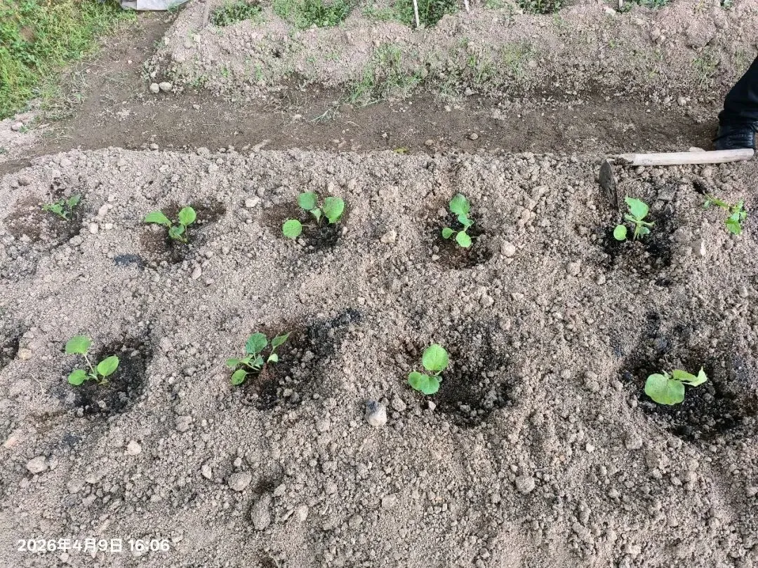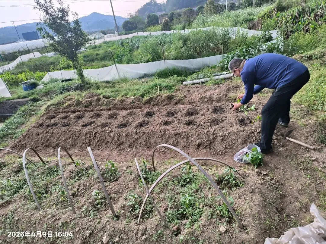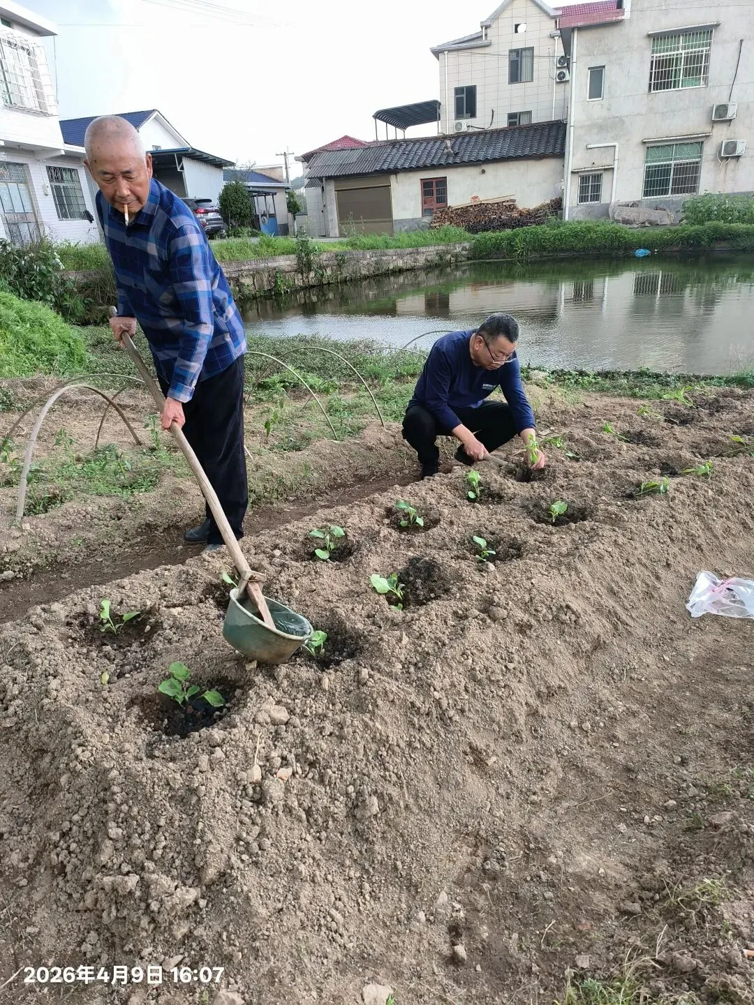我拐到淑姐家的菜地,看到她也趁着阴天栽完了茄苗,正准备回家。