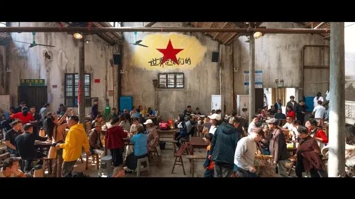 为了唤醒这份集体记忆,茶馆团队没有进行大刀阔斧的改造,而是做了最克制的“轻修复”,完整保留了斑驳的墙面、凹凸的水泥地面,甚至院子里的本地梧桐树都特意留存——正如《长沙方志》中记载的,老长沙人的院子里,总少不了这样的烟火点缀。馆内,老式瓷缸整齐摆放,中央矗立的“毛主席语录碑”格外醒目,墙上挂着毛主席、黄兴、曾国藩等湖南历史名人的画像,装饰中融入了解放战争时期乃至民国的元素,完整复刻了上世纪老长沙茶馆的模样。