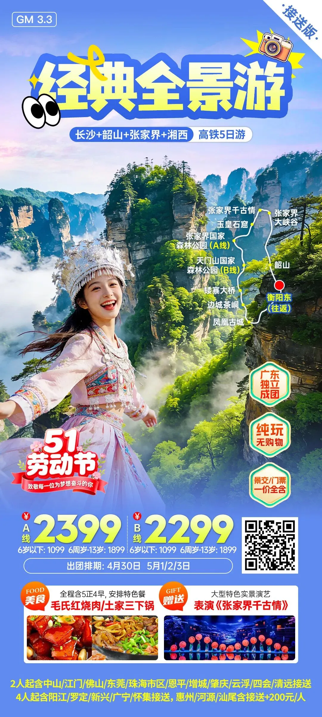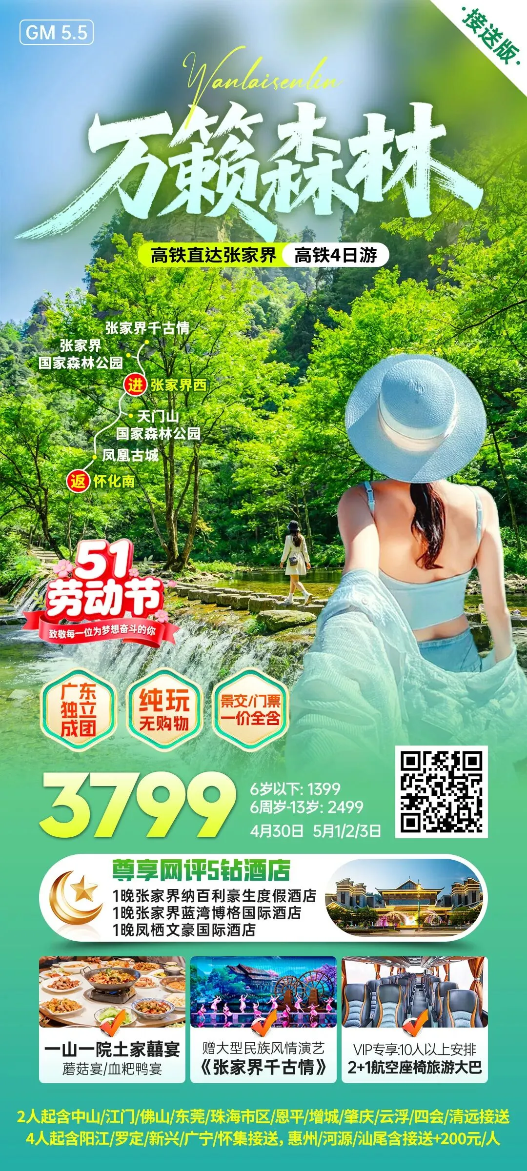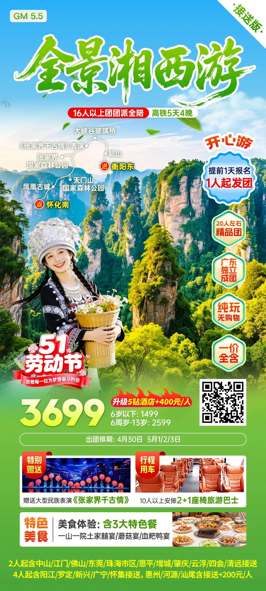 增城小区接送【五一假期•湖南】长沙-橘子洲、韶山、张家界-森林公园&天门山、游湘西-芙蓉镇&凤凰古城...动车团汇集
