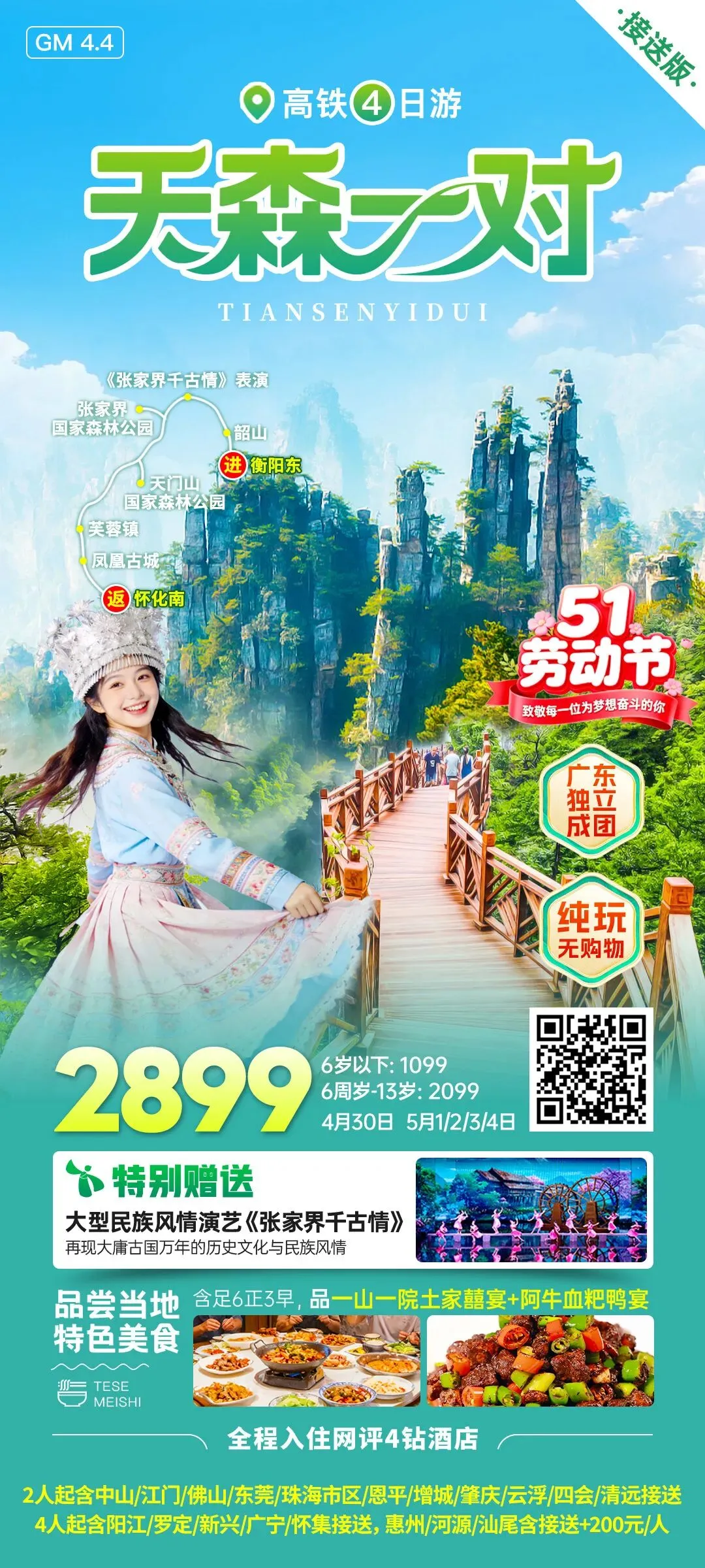 🏘全程入住4钻酒店🎭💖欣赏民俗表演《张家界千古情》