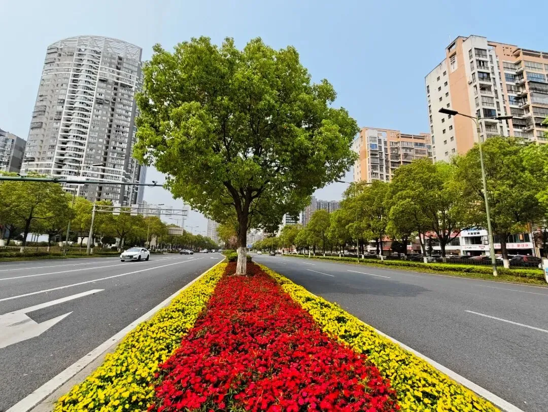 等红灯时看一眼路边的花带
