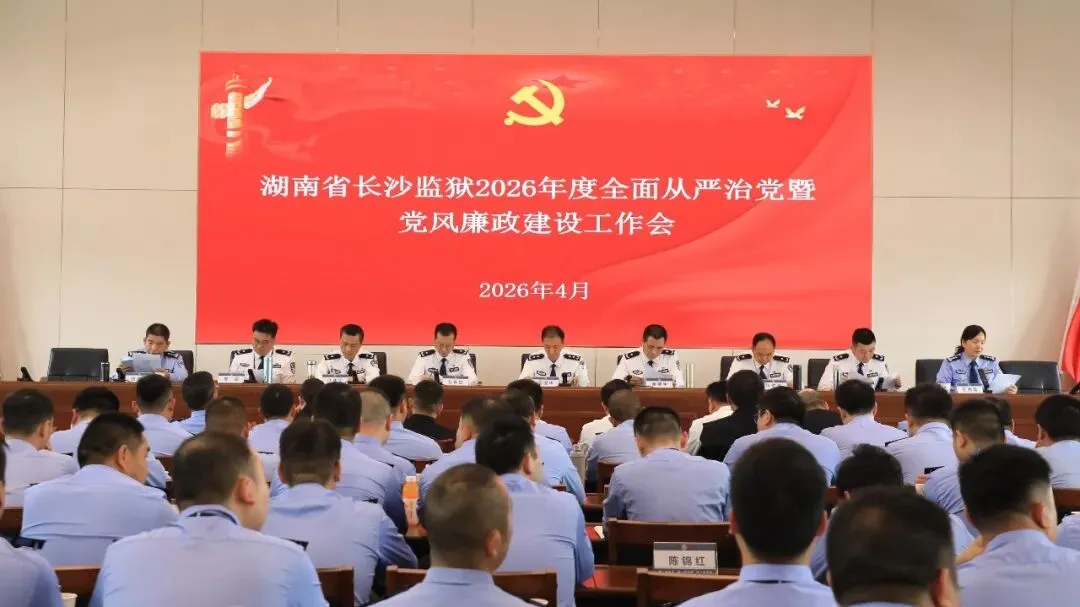 4月8日,长沙监狱召开2026年度全面从严治党暨党风廉政建设工作会议,深入学习贯彻党的历次全会精神,全面落实中央纪委、省纪委全会及省直司法行政系统全面从严治党工作会议部署,总结2025年工作,分析当前形势,部署2026年重点任务。全体中层以上领导干部参加会议。