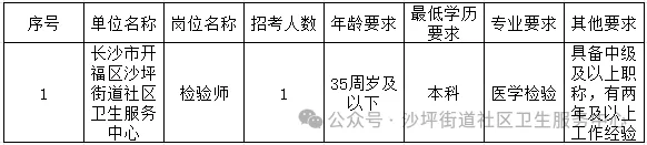 【长沙】开福区沙坪街道社区卫生服务中心公开招聘卫生专业技术临聘人员