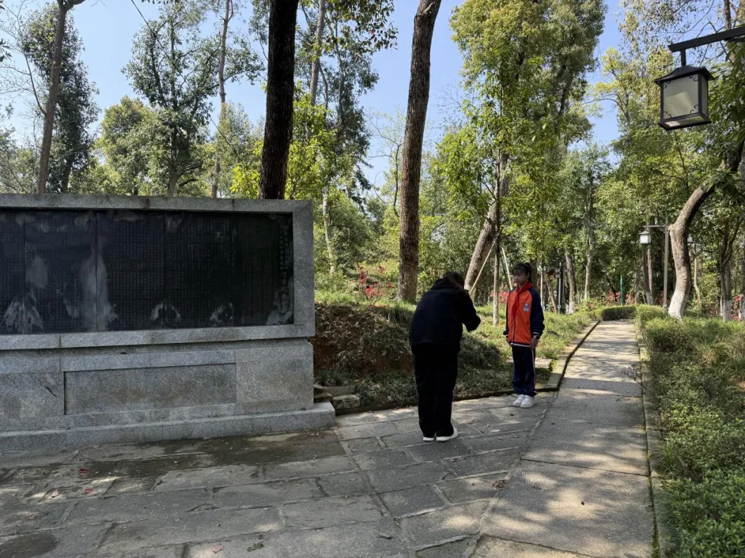 苍松翠柏间,烈士陵园庄严肃穆。师生代表整齐列队,向革命先烈敬献花篮,一朵朵白菊承载着无尽哀思与崇高敬意。祭扫仪式后,大家在讲解员的带领下,依次参观了杨开慧故居与纪念馆。