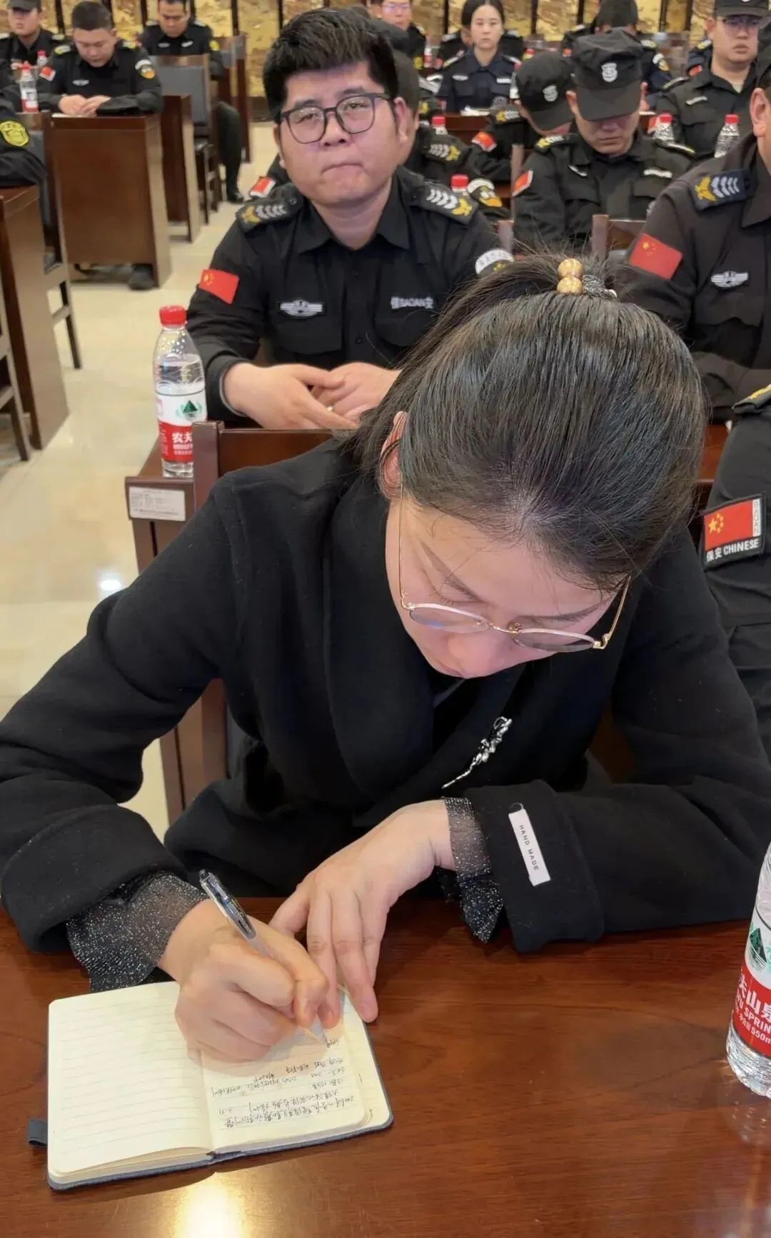 授课环节,张博教官围绕大型活动安保工作重点,以理论讲解+实例剖析的形式展开系统授课。授课内容紧密结合实战,重点涵盖安保勤务规范与岗位职责、应急处置与实战技能。张博教官从大型活动中保安员的核心职责、人员安检流程、秩序维护标准及场内外区域管控要求等方面进行了细致讲解,明确了不同岗位的工作边界与履职要点。通过真实案例复盘,深入分析了大型活动现场常见的不安定因素,重点讲解了突发事件的快速响应机制与现场处置技巧,并对最小作战单元协同战术、安保器械规范使用等实战内容进行了针对性指导,内容干货满满、实操性强。