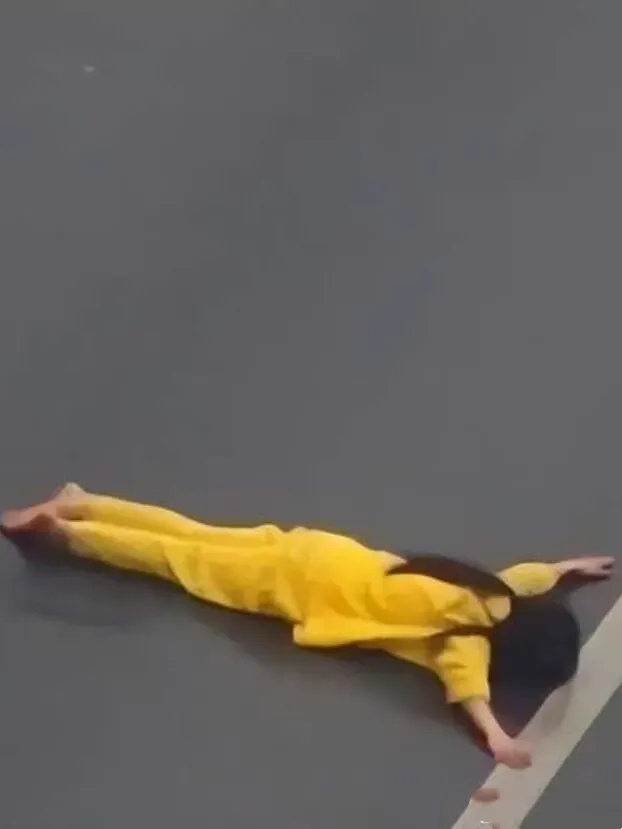 她在车道间奔跑、徘徊,时而追逐车辆,时而翻越护栏,最后径直跪在马路中央,缓缓躺倒,全然不顾刺耳的刹车声与喇叭鸣笛。冰冷的雨水浸透衣衫,硌着石子的地面刺痛脚掌,这个年轻的姑娘,仿佛对世间一切危险都已麻木。