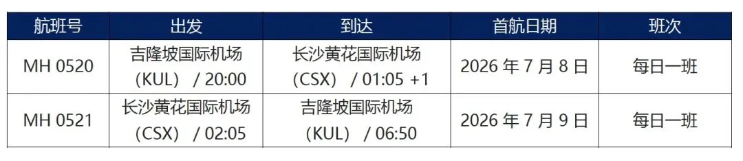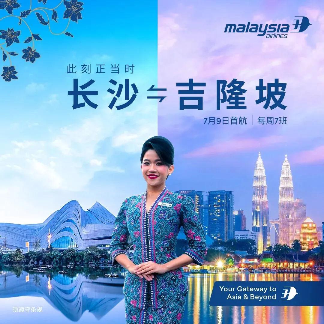 2026年7月9日开通长沙⇌吉隆坡每日航班
