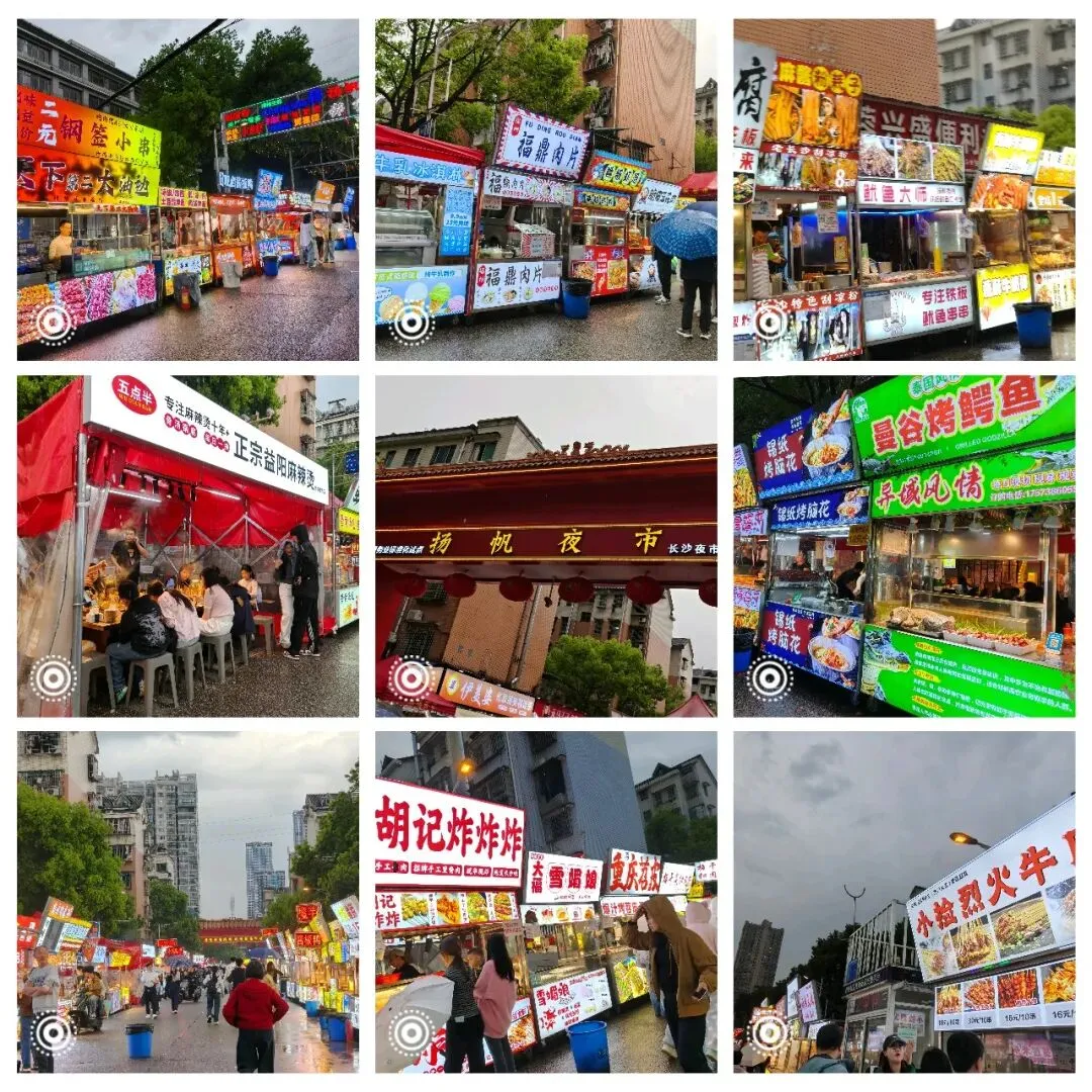 逛在扬帆夜市里,耳边是摊主的吆喝声、食客的谈笑声,鼻尖是各种美食的香气,眼前是密密麻麻的摊位,那种热闹又鲜活的烟火气,才是长沙最动人的模样。