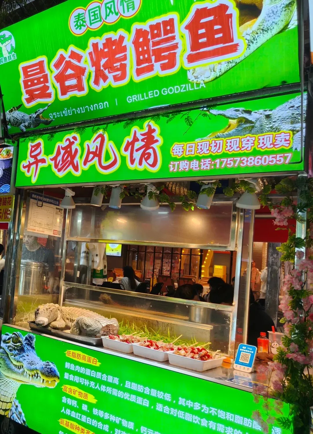 和坡子街的本地风味不同,扬帆夜市更像是一个美食江湖,天南海北的小吃在这里汇聚,从长沙本地的糖油粑粑、益阳麻辣烫,到东北烤冷面、福鼎肉片、泰国露楚,甚至还有鳄鱼肉摊位,第一次见的时候直接吓了一跳,也算是解锁了新奇体验😂。