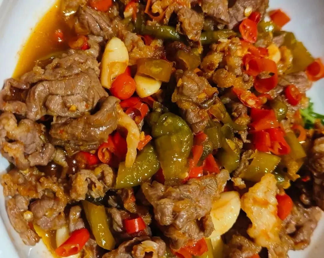 酸菜肥肠钵,肥肠干净无异味,辣椒和酸豆角酸菜一起炒,酸辣开胃,是一道不错的下饭菜。茶油炒牛腱子肉,牛腱子肉又嫩又有点嚼劲,口感好,茶油、大蒜、红辣椒和酱辣椒一炒,更加增香。口味鸡爪,喜欢!!比较软糯的鸡爪,炸一下,外皮焦香,再放辣椒和葱姜蒜爆炒一下,香辣入味。糖饺子,感觉这个糖饺子要比长沙街头的糖饺子外壳更焦脆一点,更符合我的口味。他家还有辣椒王蒸翘白鱼、生炒排骨、生炒吊龙、炒花猪肉等受欢迎的硬菜,都是比较起口味的下饭菜。