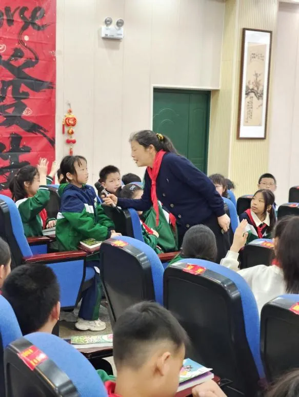 台下的同学们听得全神贯注、眼中闪光,在周静老师的引导下,大家不仅沉醉于故事的奇妙,更读懂了文字背后的热爱与初心。讲座最后,周静老师还为孩子们送上精心准备的书签,把文学的种子轻轻种进每个孩子心田。