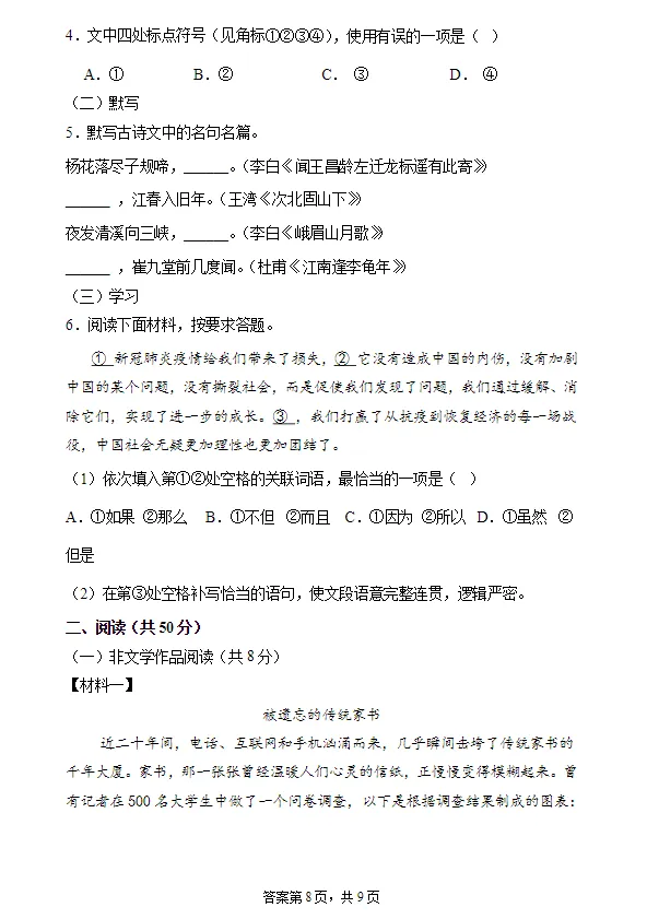 | 1. 2025-2026学年九年级(初三)语文上学期第一次月考卷+答案全解全析+答题卡 2. 2025-2026学年九年级(初三)上学期第一次月考数学卷+答案全解全析+答题卡 3. 2025-2026学年九年级(初三)英语上学期第一次月考卷(湖南长沙专用)+听力+答案全解全析+答题卡4. 2025-2026学年九年级(初三)物理上学期第一次月考卷+答案全解全析+答题卡5. 2025-2026学年九年级(初三)化学上学期第一次月考卷+答案全解全析+答题卡6. 2025-2026学年九年级历史上学期第一次月考卷(长沙专用)+答案全解全析+答题卡7. 2024-2025学年九年级道德与法治上学期第一次月考卷(长沙专用)+答案全解全析+答题卡8. 2025年10月湖南长沙长郡集团初中九年级(初三)上学期第一次月考数学真题及答案9. 2025年10月湖南长沙长郡集团初中九年级(初三)上学期第一次月考语文真题及答案10. 2025年10月湖南长沙长郡集团初中九年级(初三)上学期第一次月考物理真题及答案11.2025年10月湖南长沙长郡集团初中九年级(初三)上学期第一次月考英语真题含听力及答案12. 2025年10月湖南长沙长郡集团初中九年级(初三)上学期第一次月考历史真题及答案13. 2025年10月湖南长沙长郡集团初中九年级(初三)上学期第一次月考化学真题及答案14.2025年10月湖南长沙长郡集团初中九年级(初三)上学期第一次月考道德与法治真题及答案15.2025-2026学年九年级(初三)上学期化学第一次月考卷及答案16.2025-2026学年九年级(初三)上学期物理第一次月考卷及答案17.2025-2026学年九年级(初三)上学期历史第一次月考卷及答案18.2025-2026学年九年级(初三)上学期道德与法治第一次月考卷及答案19.2025-2026学年九年级(初三)上学期语文第一次月考卷及答案20.2025-2026学年九年级(初三)上学期数学第一次月考卷及答案21.2025-2026学年九年级(初三)上学期英语第一次月考卷及答案 22.2025-2026-1雅礼集团九年级(初三)化学第一次月考试卷(10月)含答案23.2025年初中学科学习质量调研检测九年级英语试卷含答案24.2025-2026湖南师范大学附属中学初三第一次月考语文试卷(含答案) 25.【语文原卷+答案】2024-2025-1 湖南长沙市雅礼教育集团九年级初三期中试卷26.【数学原卷+答案】2024-2025-1 湖南长沙市雅礼教育集团九年级初三期中试卷27.【英语原卷+答案】2024-2025-1 湖南长沙市雅礼教育集团九年级初三期中试卷28.【物理原卷+答案】2024-2025-1 湖南长沙市雅礼教育集团九年级初三期中试卷29.【化学原卷+答案】2024-2025-1 湖南长沙市雅礼教育集团九年级初三期中试卷30.【历史原卷+答案】2024-2025-1 湖南长沙市雅礼教育集团九年级初三期中试卷31.【思想与道德原卷+答案】2024-2025-1 湖南长沙市雅礼教育集团九年级初三期中试卷32.【数学原卷+答案】2025-2026学年度九年级(初三)第一学期素养形成第一次能力训练33.【英语原卷+听力+答案】2025-2026学年度九年级(初三)第一学期素养形成第一次能力训练34.【语文原卷+答案】2025-2026学年度九年级(初三)第一学期素养形成第一次能力训练35.【化学原卷+答案】2025-2026学年度九年级(初三)第一学期素养形成第一次能力训练36.【历史原卷+答案】2025-2026学年度九年级(初三)第一学期素养形成第一次能力训练37.【思想与道德原卷+答案】2025-2026学年度九年级(初三)第一学期素养形成第一次能力训38.【语文试卷+答案】山西大学附属中学2025—2026学年第一学期初三年级10月巩固39.【数学试卷+答案】山西大学附属中学2025—2026学年第一学期初三年级10月巩固40.【英语试卷+答案】山西大学附属中学2025—2026学年第一学期初三年级10月巩固41.【物理试卷+答案】山西大学附属中学2025—2026学年第一学期初三年级10月巩固42.【化学试卷+答案】山西大学附属中学2025—2026学年第一学期初三年级10月巩固43.【历史试卷+答案】山西大学附属中学2025—2026学年第一学期初三年级10月巩固44.【道德与法治试卷+答案】山西大学附属中学2025—2026学年第一学期初三年级10月巩固45.【2025秋新版】九年级上第一学期【英语】期中检测培优卷(含答案)46.2024-2025-1 雅礼教育集团 九年级(初三)上学期期中考试数学试卷(含答案)47.2024-2025-1 雅礼教育集团 九年级(初三)上学期期中考试语文试卷(含答案)48.2024-2025-1 雅礼教育集团 九年级(初三)上学期期中考试英语试卷(含答案)49.2024-2025-1 雅礼教育集团 九年级(初三)上学期期中考试物理试卷(含答案)50.2024-2025-1 雅礼教育集团 九年级(初三)上学期期中考试化学试卷(含答案)51.2024-2025-1 雅礼教育集团 九年级(初三)上学期期中考试历史试卷(含答案)52.2024-2025-1 雅礼教育集团 九年级(初三)上学期期中考试道德与法治试卷(含答案)53.2024-2025郑州外国语中学等校联考九上期中数学试卷及答案54.2024-2025郑州外国语中学等校联考九上期中物理试卷及答案55.2024-2025郑州外国语中学等校联考九上期中化学试卷及答案56.2024-2025郑州外国语中学等校联考九上期中语文试卷及答案57.2024-2025郑州外国语中学等校联考九上期中英语试卷及答案58.2024-2025郑州外国语中学等校联考九上期中历史试卷及答案59.2024-2025郑州外国语中学等校联考九上期中道德与法治试卷及答案 60.人教版九年级数学上册二次函数高频易错考点原卷版+解析版 61.沪教版(五四制)九年级数学上册锐角的三角比重点题型训练(原卷版)+解析版62.中考数学真题一次函数(全国通用)原卷版+解析版63.北师大版九年级