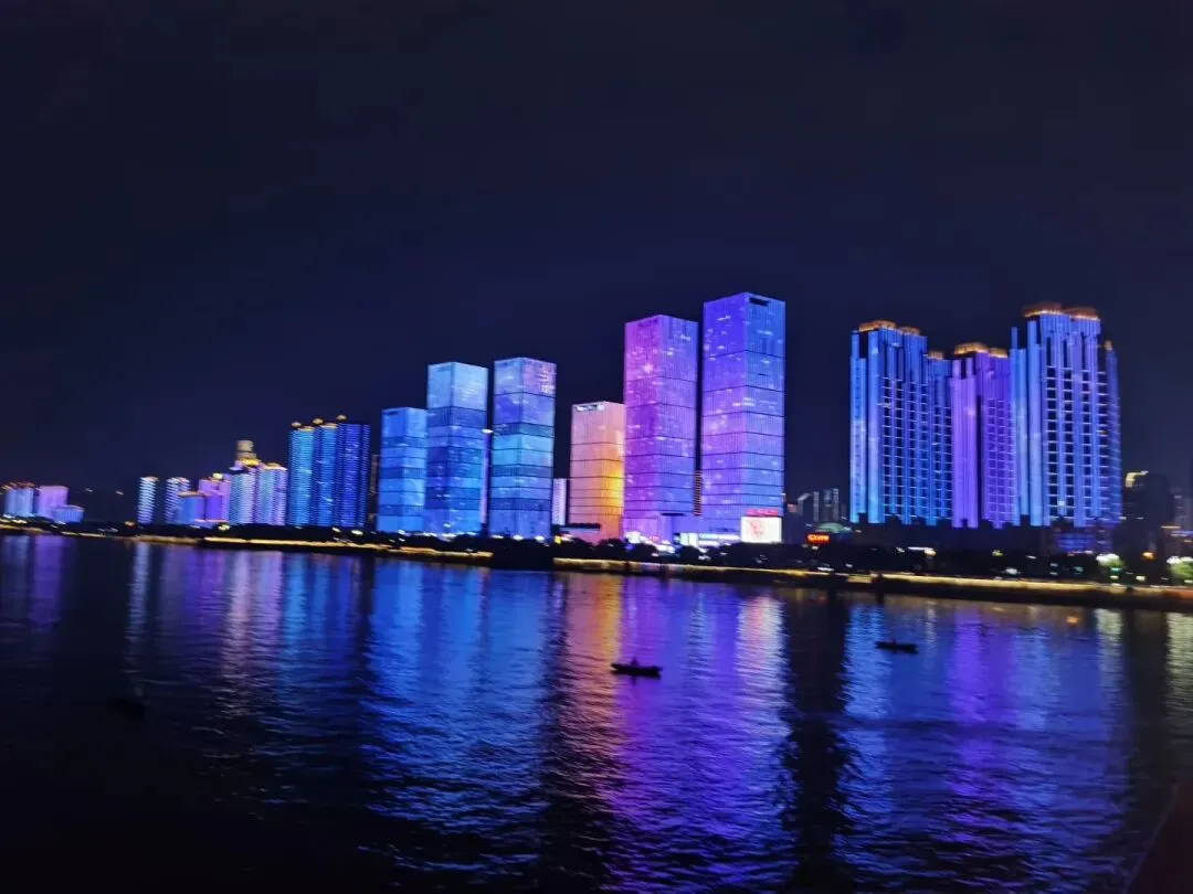 离开橘子洲跨上橘子洲大桥,黄昏正被一轮明月和川流不息的车灯以及两岸万家灯火稀释着……吹着湘江的风,看着长沙的夜色渐柔,连片的霓虹闪烁在建筑幕墙上,连同静静的湘江水流动成一幅幅精美的画面。