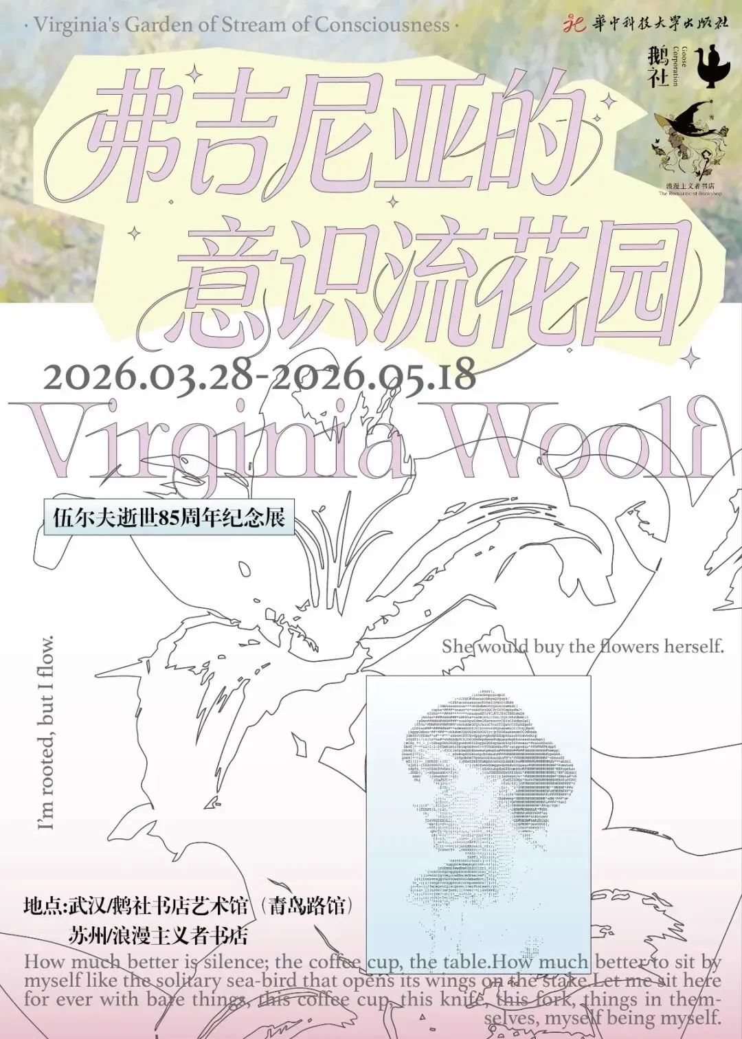 在弗吉尼亚·伍尔夫逝世85周年之际,华中科技大学出版社与鹅社GooseCorporation联合呈现“弗吉尼亚的意识流花园:伍尔夫逝世85周年纪念展”,邀请你走进她的花园。