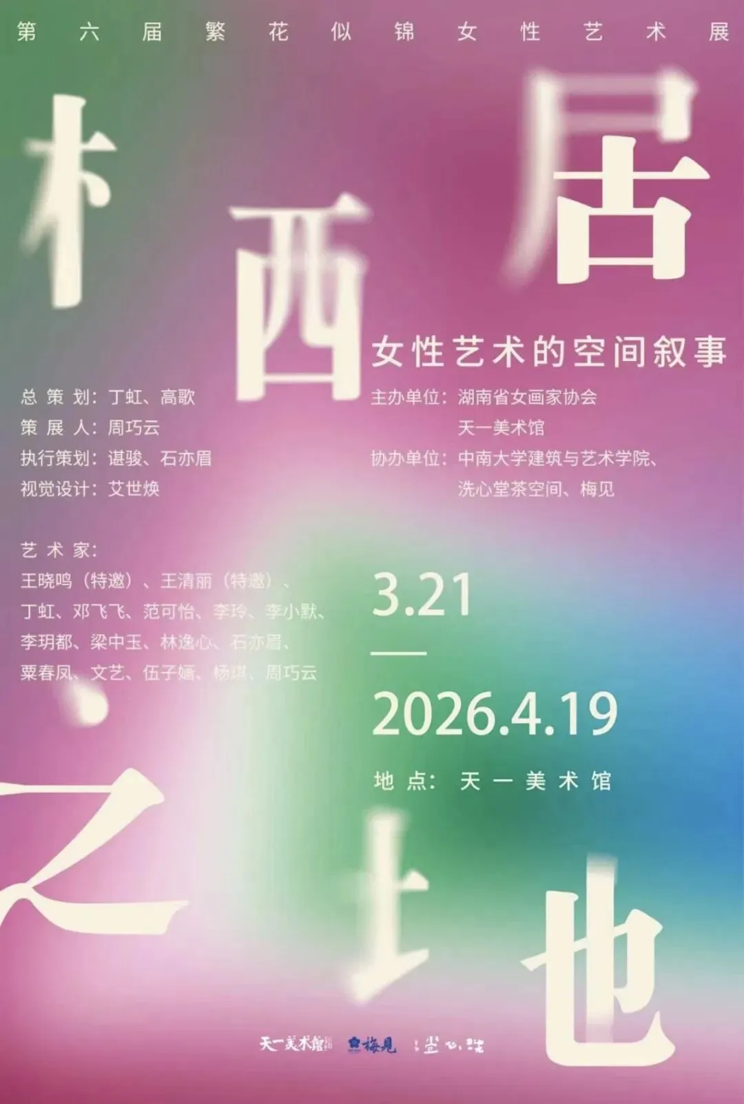 本次展览以“栖居之地”为主题,展开一场关于女性与空间关系的探索。16位女性艺术家通过水墨、油画等介质,重新定义“空间”——它不仅仅是地理坐标,更是承载着记忆与情感的场域。