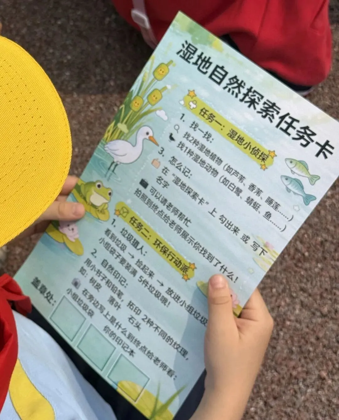小学的同学们则肩负更具挑战的使命。在“湿地小侦探”任务中,他们仔细观察,记录下芦苇、香蒲等湿地植物的形态,寻找青蛙、蜻蜓的踪迹。在“环保行动派”环节,他们不仅进行“垃圾清零”,还学习正确分类。最富创意的是“自然拓印师”任务,孩子们用铅笔和纸,树叶、花朵、石头等细心拓印树皮纹理、花朵颜色、叶片脉络,将大自然独一无二的“指纹”留存为珍贵的纪念。