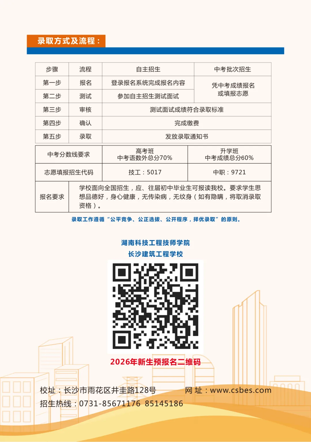 长沙建筑工程学校(湖南科技工程技师学院)2026年招生简章