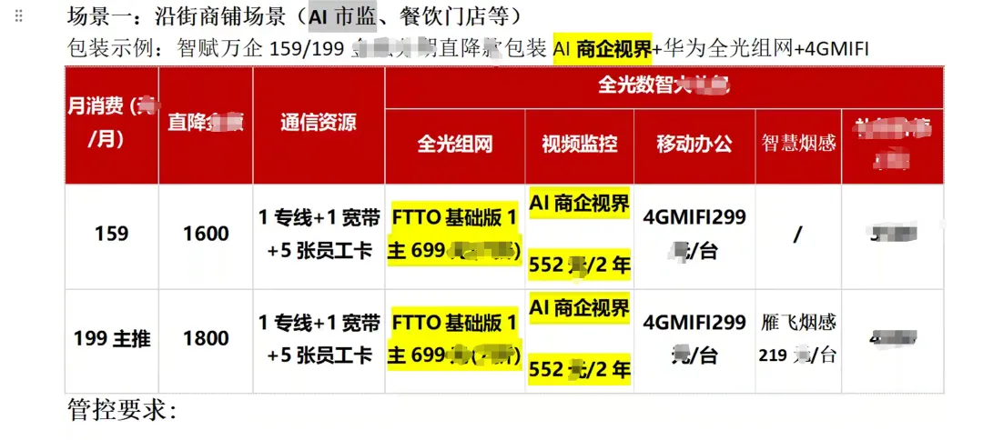 企业网关:这个业务必须开企业网关,企业网关就是强一些的光猫,带机量更高,还能远程分析网络出了故障后故障点在哪。三种里选一种即可。比如选择799企业网关,带2.5G网口和WIFI7功能。如果1个WIFI7点位不够,可以加购从设备,扩展WIFI覆盖。也可以只开1台799的企业网关。尊享版为300台带机量设定。299档次以上可以通过约定在网2年,给NVR版企业网关+5路摄像头。加购更多,最多支持16路摄像头30天回看。 第二免费宽带(调测费100):可以给员工,老板,或者经办人(谁接手管网络这个事)家里再送一条家宽。或者装员工宿舍,或者直播公司二宽带一个直播间。综合布线和摄像头?约25/工位点位布线。然后计算交换机,交换机调试,跨房间布线。需要摄像头可以考虑NVR版本,然后加摄像头和摄像头牵线安装。如果您是沿街商铺或者食品行业,有AI监管专属套餐:特殊行业可以开放159档次,但是上述2套餐需要约定在网2年。THE COLD CURRENT WILL ARRIVE上图为按规定资质展示用,不承载业务。办理本文说的业务关注我们,菜单栏联系我们。