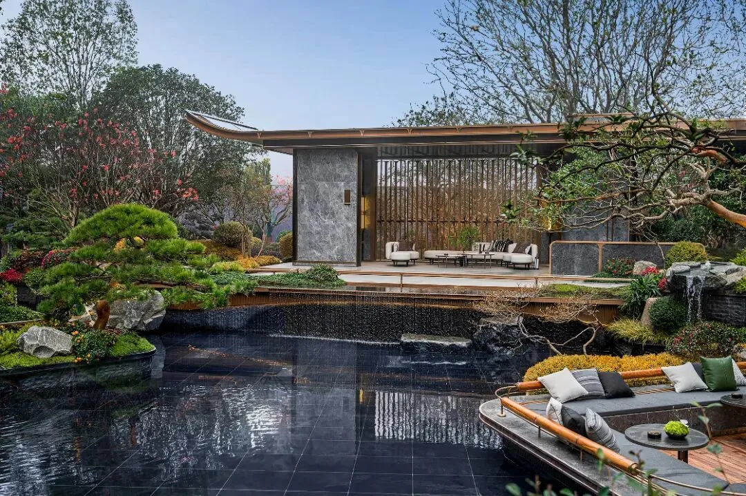园林景观做得相当精致,超3000㎡的围合式中庭景观,通过风雨连廊、礼仪水景与四季绿植等层层递进,走在里面就像逛公园。