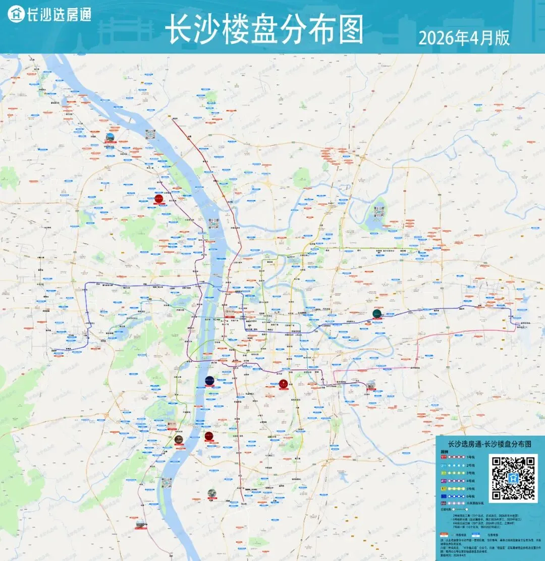 楼盘分布图也将长沙目前已建、在建的地铁线路站点标注在图内,供各位购房者参考。