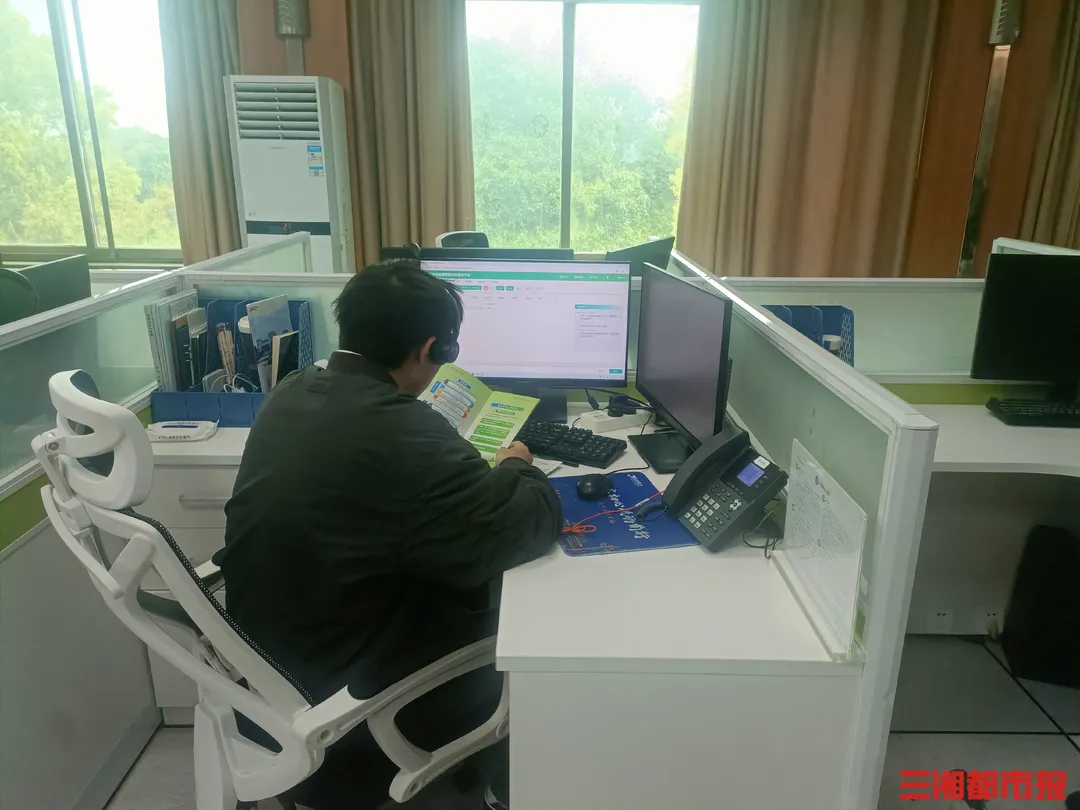 在长沙殡葬服务专线96321接线室内,话务员正在耐心为群众答疑解惑。(杨昱 摄)