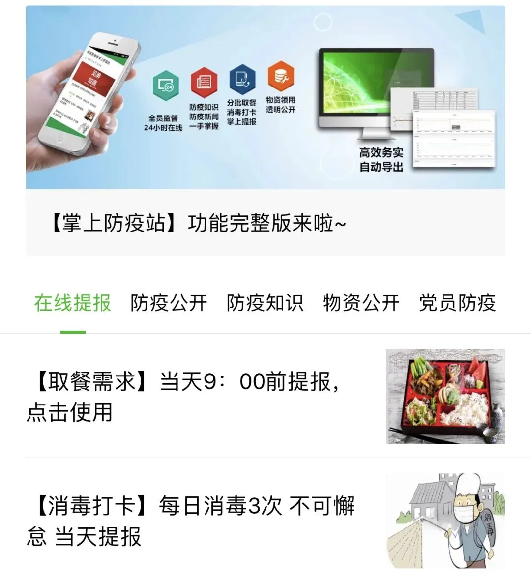“掌上防疫站”包含了战疫新闻、防疫监督、掌上疫站3个一级菜单。