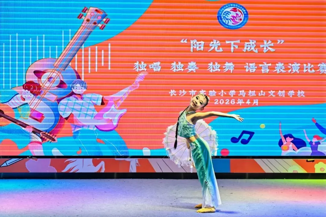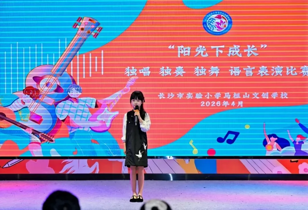 四月的校园,艺术之花竞相绽放。4月9日下午,长沙市实验小学马栏山文创学校六楼报告厅内歌声悠扬、舞姿翩跹、琴声婉转、诵声铿锵,2026年“独唱、独奏、独舞、语言表演”比赛在此圆满落下帷幕。小艺术家们同台竞技,用精湛的技艺和饱满的热情,为现场师生呈现了一场精彩纷呈的艺术盛宴。