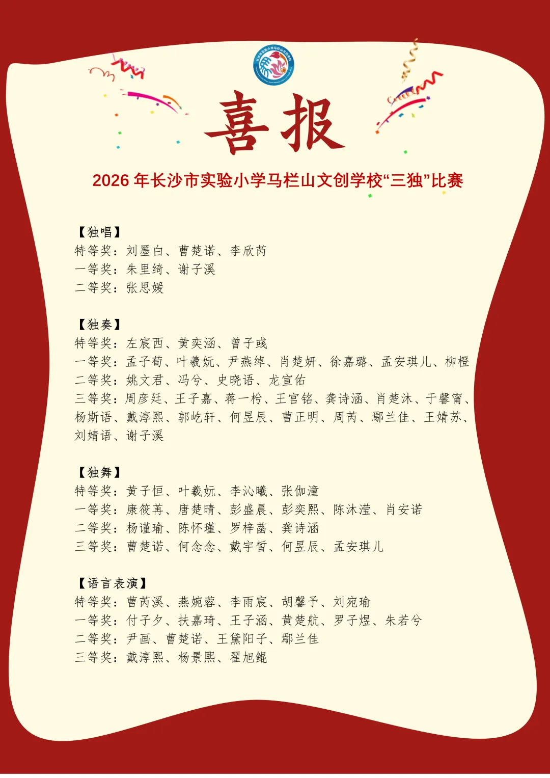 阳光下成长|长沙市实验小学马栏山文创学校2026年“三独”比赛纪实