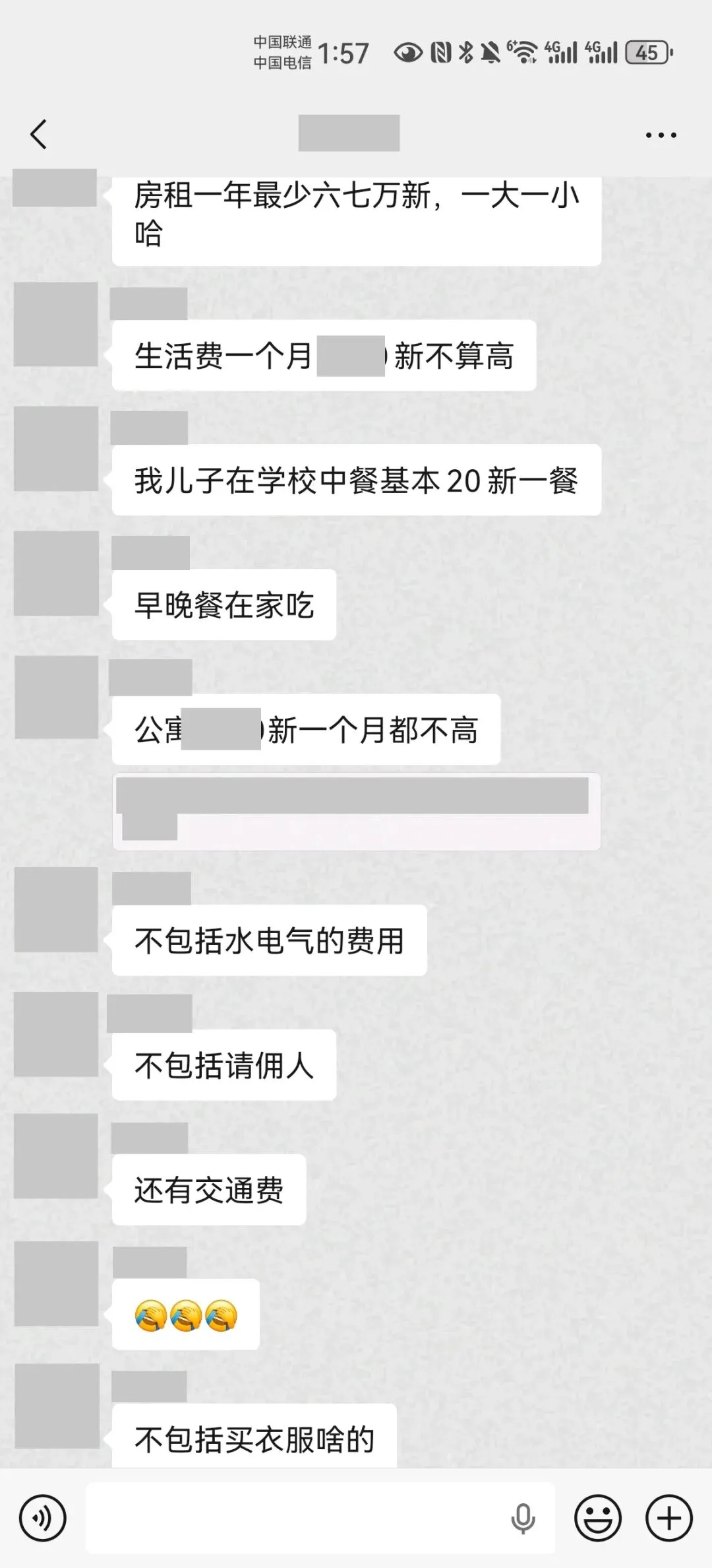 | | | 孩子中餐 20 新币 / 天(200 天在校)+ 早晚餐 + 日常食材,2 人合计 |