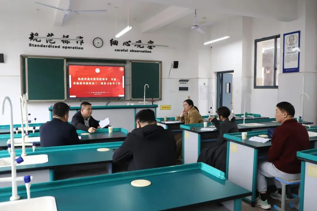 最后,我校党支部书记、校长杨志伟作表态发言。他真诚感谢专家们一天的辛勤付出和精准指导:“各位专家从课堂教学、二轮策略、学情把握、备考方向等方面,作出了全面、精准、深刻的反馈与指导,意见务实中肯、建议科学可行,为我们接下来的复习备考厘清了思路、指明了路径、破解了困惑。”杨校长表示,学校将以此次调研为新起点,坚守教育初心、深耕备考细节、凝聚全校合力,以更科学的备考、更扎实的教学、更优异的成绩,回报各级领导与专家的关心支持,努力办好人民满意的教育。