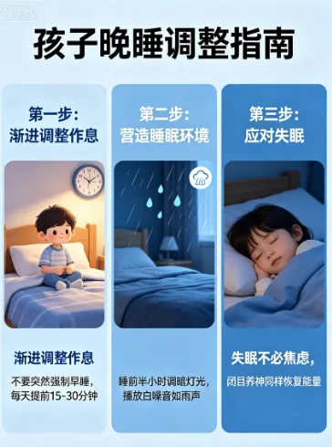 如果孩子习惯晚睡,不要突然强制早睡,可提前15-30分钟渐进调整