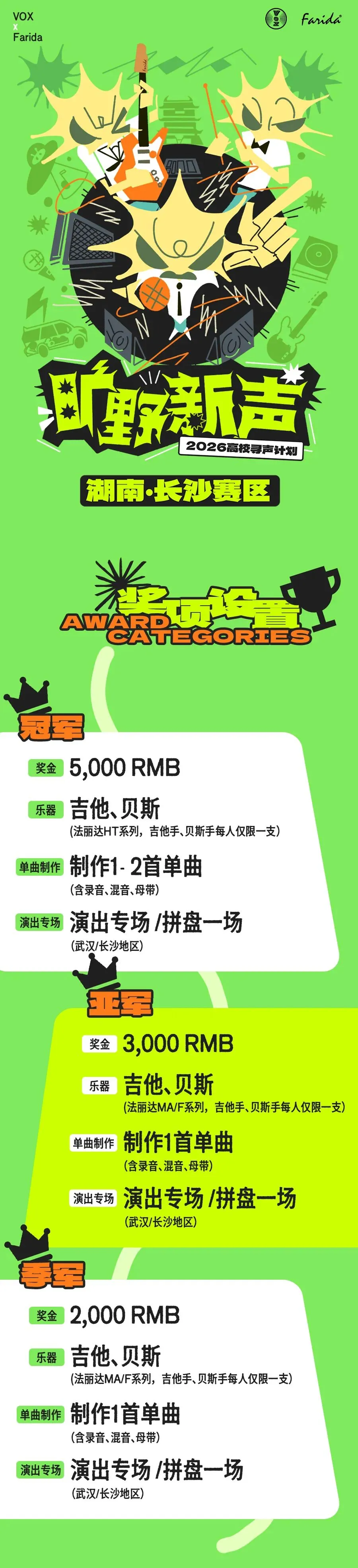 今年我们与“国货之光”法丽达Farida一拍即合,共同发起“2026高校寻声计划”,并从长沙出发即将到达武汉,湖南湖北地区的高校音乐人们,正式向大家发出邀请,与我们一同发声!