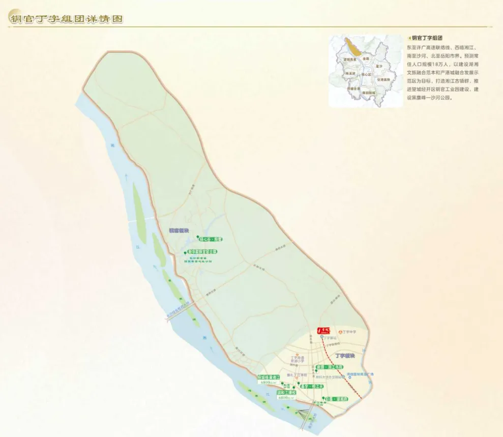 铜官丁字组团位于望城区,纳入国家级湘江新区范畴,依托铜官窑古镇文旅资源与丁字镇产业基础,定位低密宜居、文旅康养板块,房价亲民,适合养老、度假与低成本刚需置业。