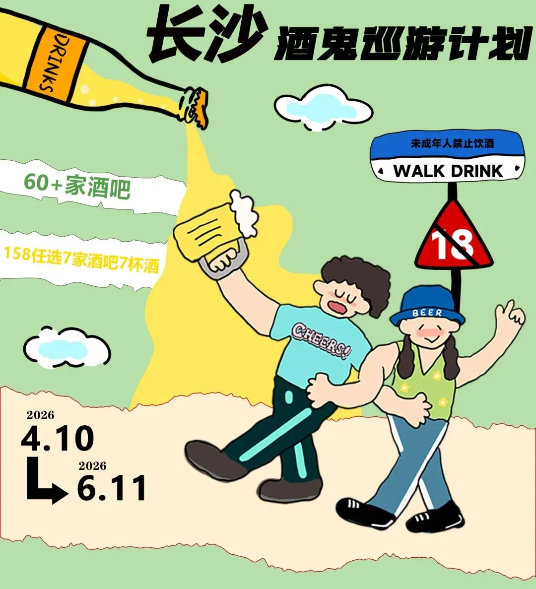【长沙站】60+家酒吧联合举办,酒鬼巡游记,都市酒鬼大狂欢,呼叫长沙酒搭子,一次边走边喝的社交打卡微醺之旅,喝7杯店内招牌酒.