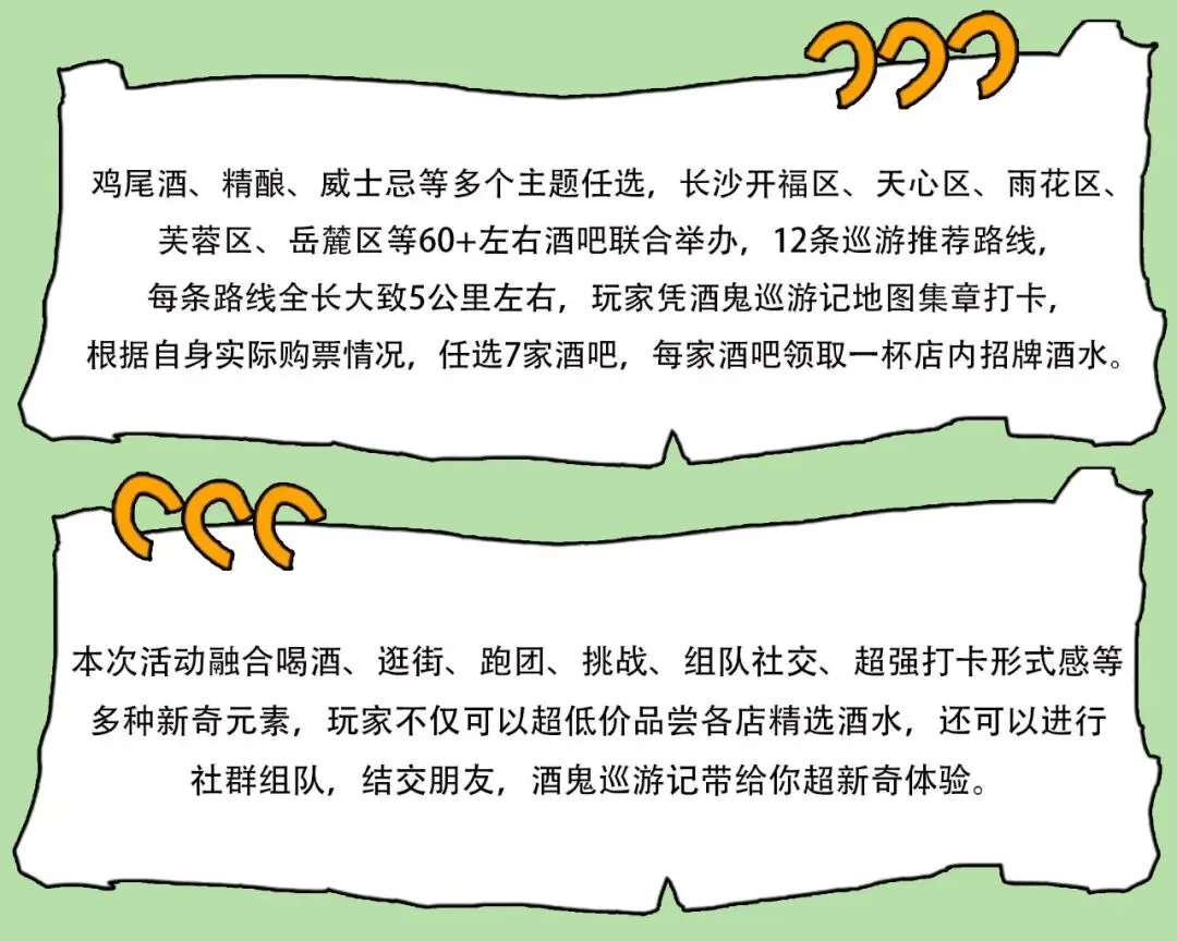 >【长沙站】60+家酒吧联合举办,酒鬼巡游记,都市酒鬼大狂欢,呼叫长沙酒搭子,一次边走边喝的社交打卡微醺之旅,喝7杯店内招牌酒.