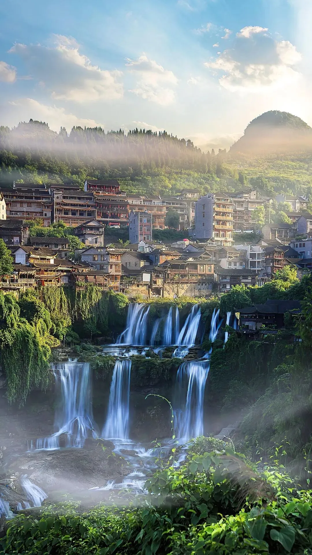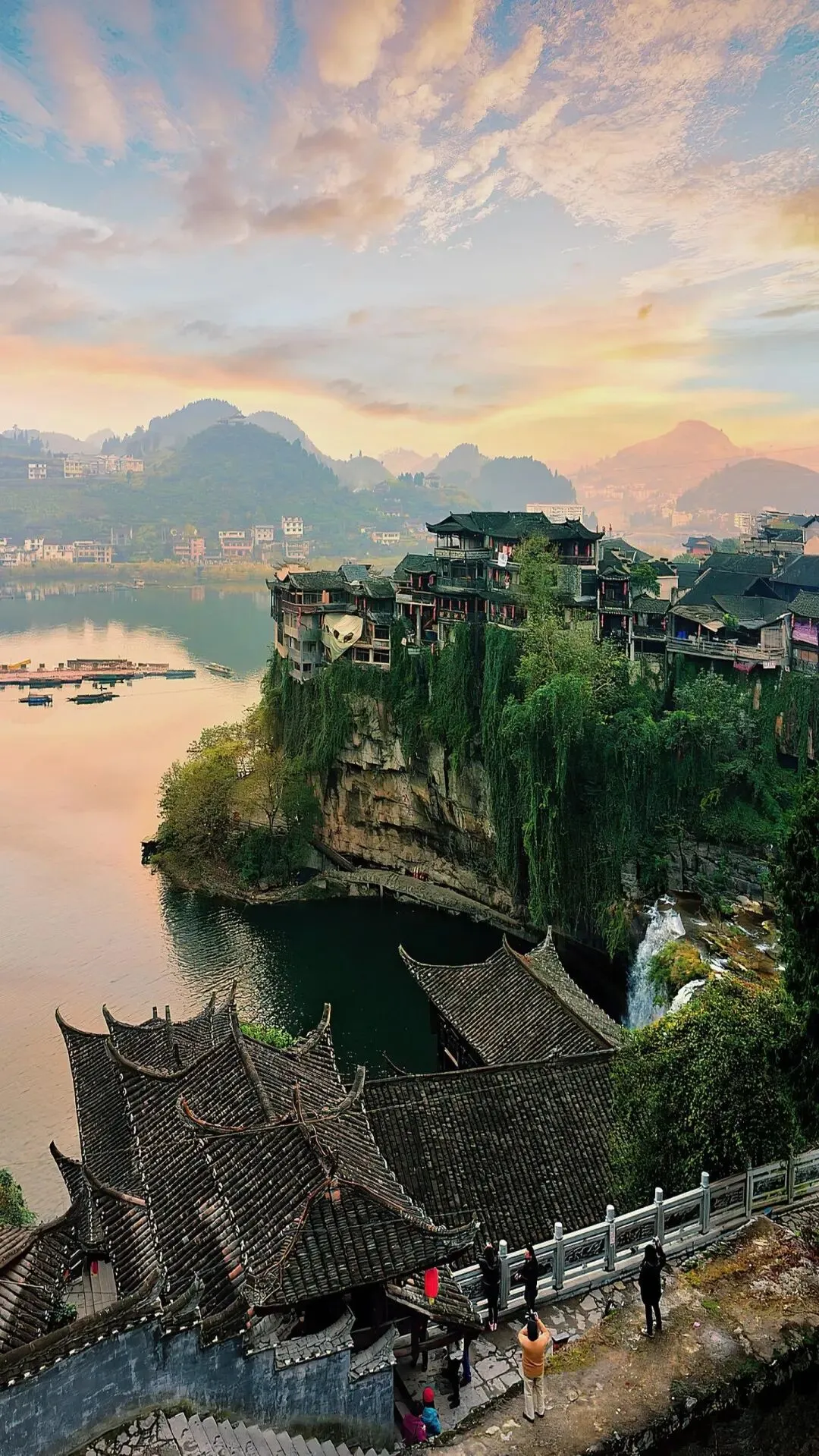 凤凰的清晨,是从沱江水面一层薄雾开始的。吊脚楼沿江而立,黑瓦木墙在湿润空气中显出深沉的色泽。江水不宽,却足够倒映两岸百年的剪影。石阶伸入水中,常有妇人浣衣,棒槌起落间,水声清脆。虹桥风雨楼横跨江上,桥下小船缓缓划过,船工的号子短促而有力。