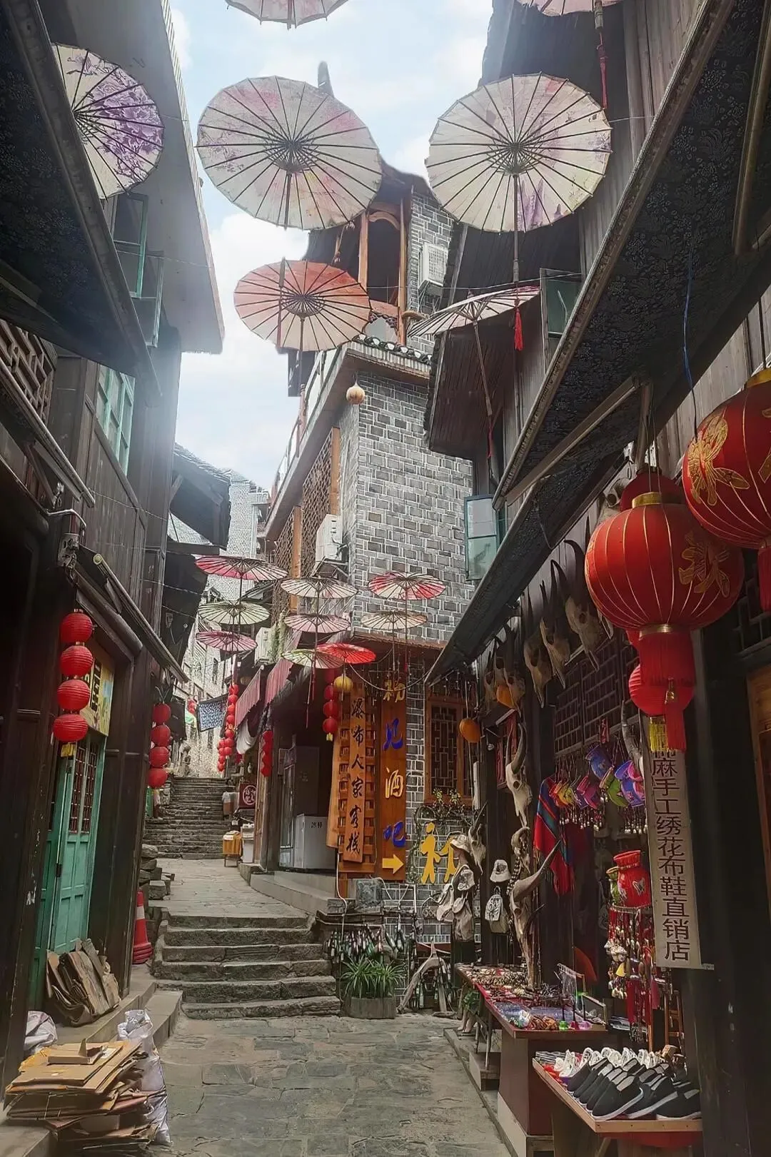 走在五里青石板街上,路面被岁月磨得发亮。两边店铺卖着刘晓庆米豆腐——当年电影里那碗米豆腐,成了今天游客必尝的小吃。