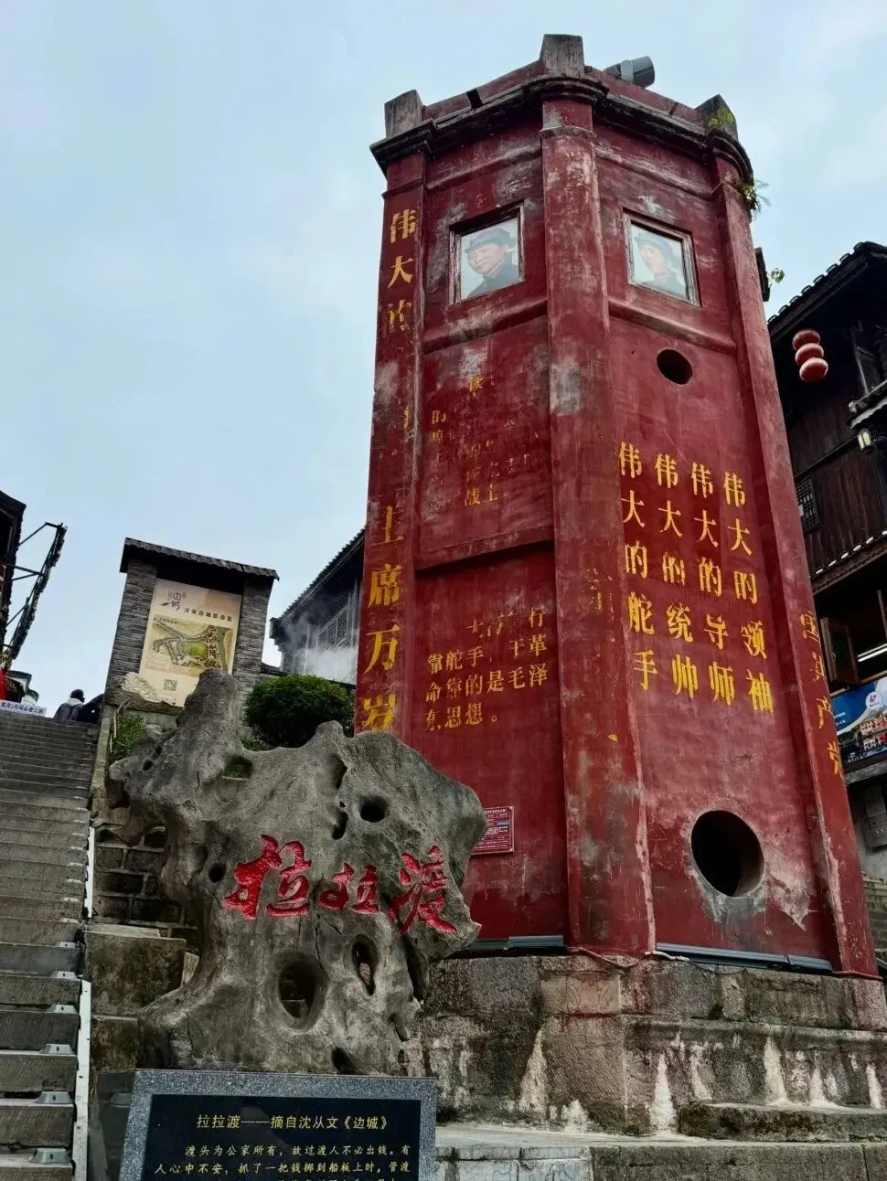 江边的吊脚楼没有过度修缮,木板有些歪斜,瓦片上长了青苔。沈从文笔下翠翠和爷爷的故事,就发生在这片山水之间。白塔立在江心小岛上,塔身不高,在绿树掩映下安静矗立。
