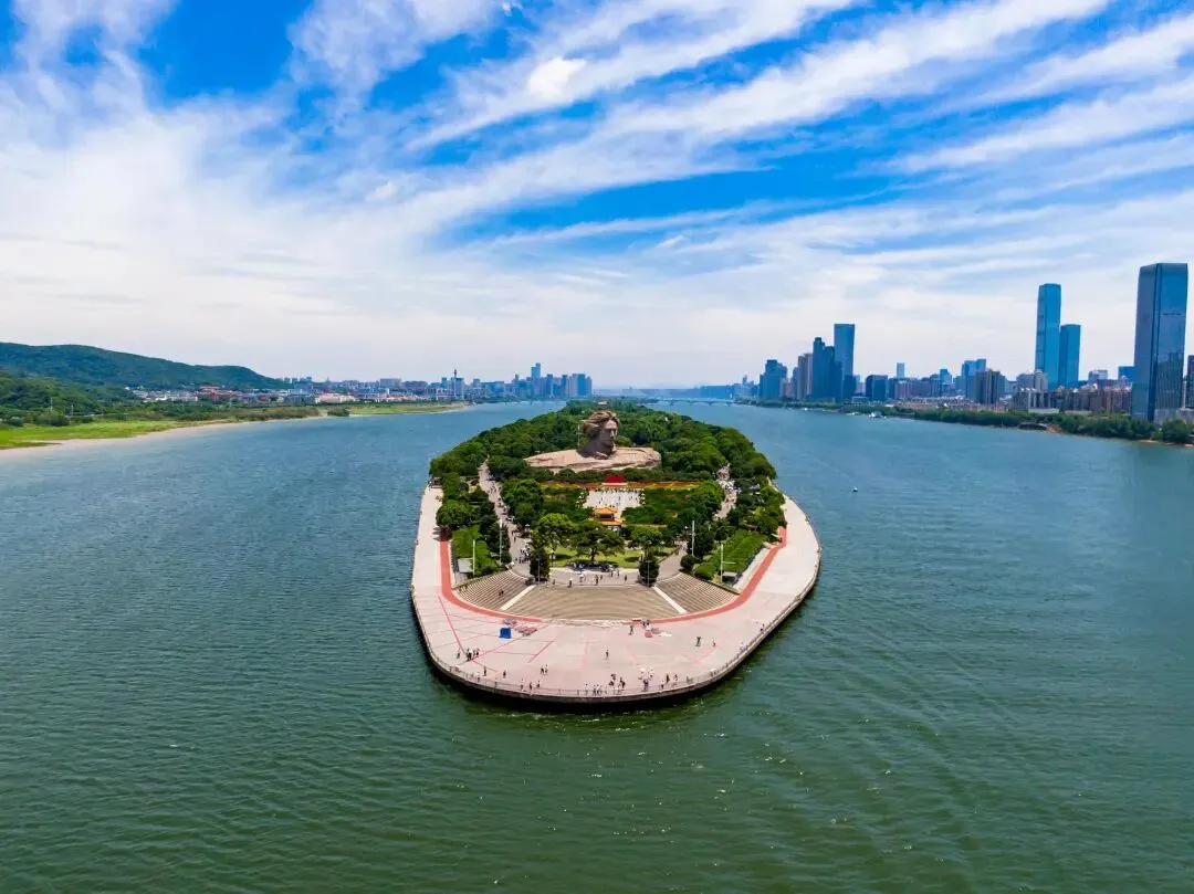 走到洲头,视野豁然开朗。站在雕像前,身后是滔滔江水,面前是长沙城的天际线,那种“问苍茫大地,谁主沉浮”的气概扑面而来。