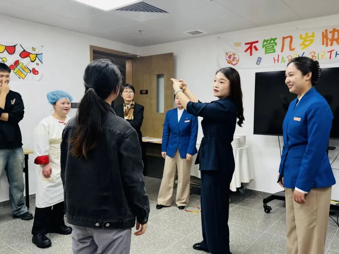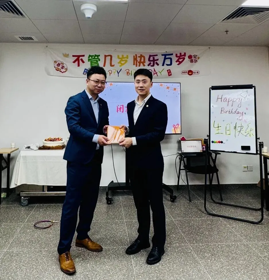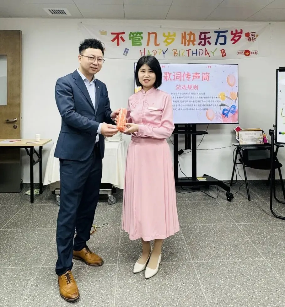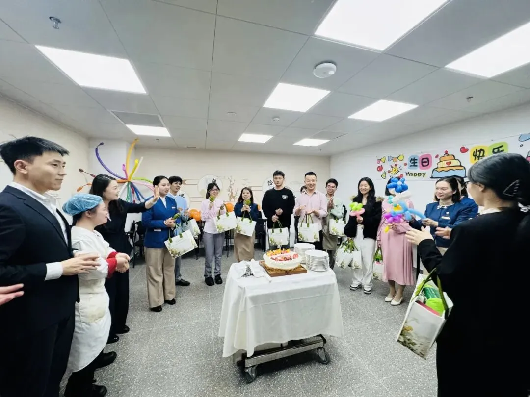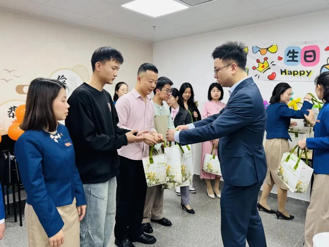 酒店管理层为寿星们送上精心准备的生日礼品,