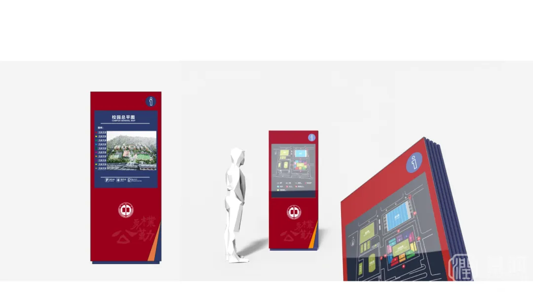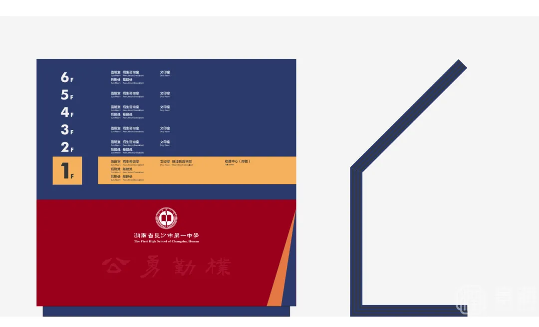 标识不仅是校园的符号,更是一个精神图腾。长沙市一中科学城校区导视系统,以“中国红”与“科技蓝”为色彩基调,融入“公、勇、勤、朴”的百年校训,寓意着在传承中开创未来。它时刻提醒师生:我们既是百年名校精神的继承者,也是新时代科学征程的启航人。