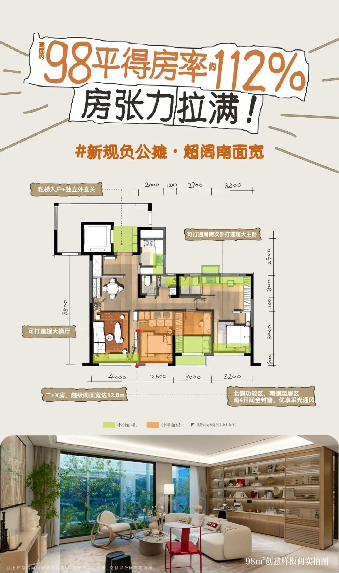 并且产品户户享有独立电梯厅,整体实际使用率高达约110%-112%。