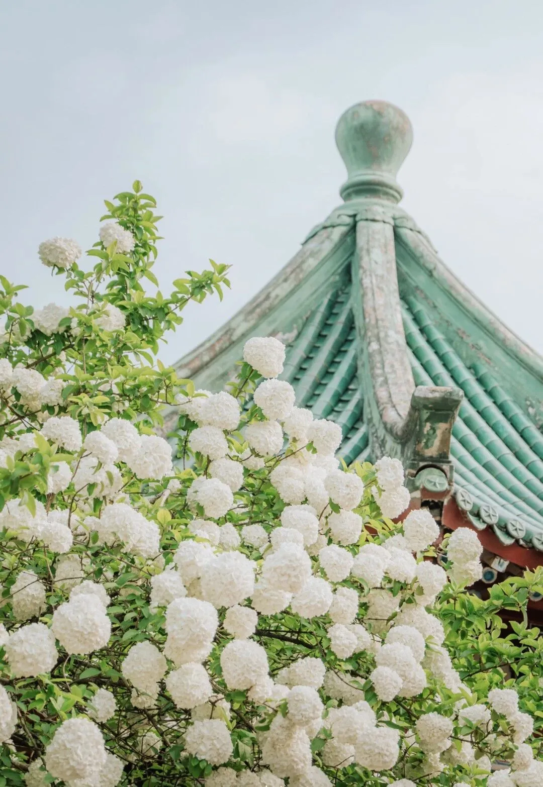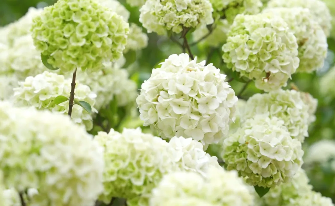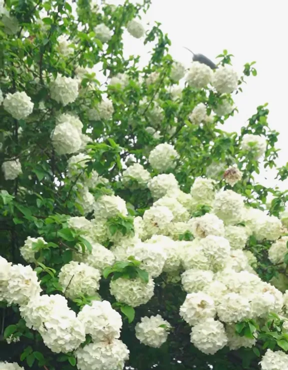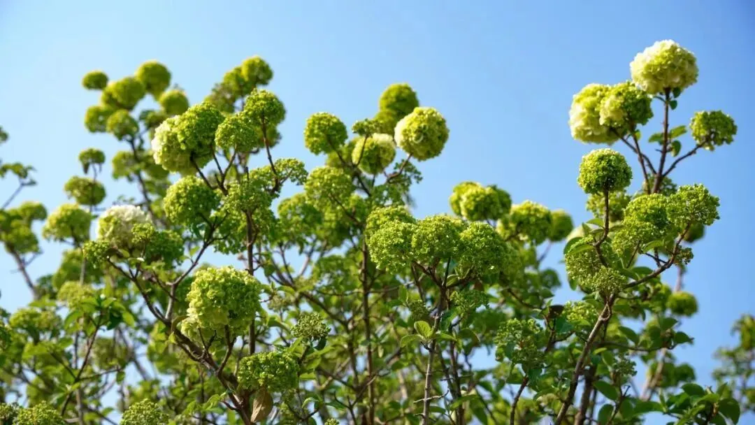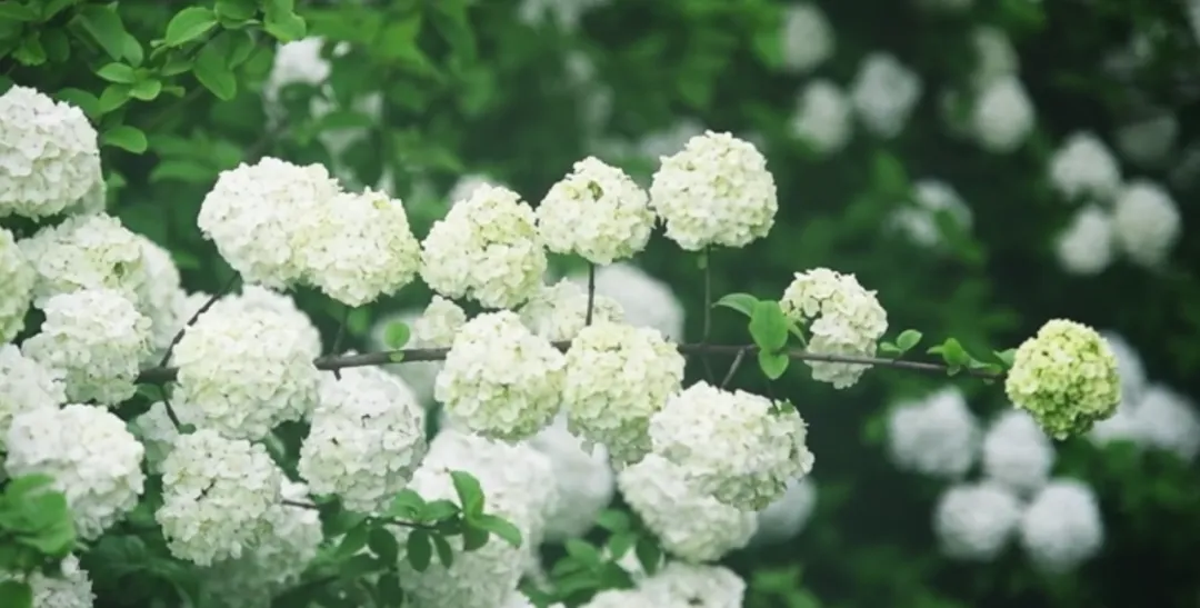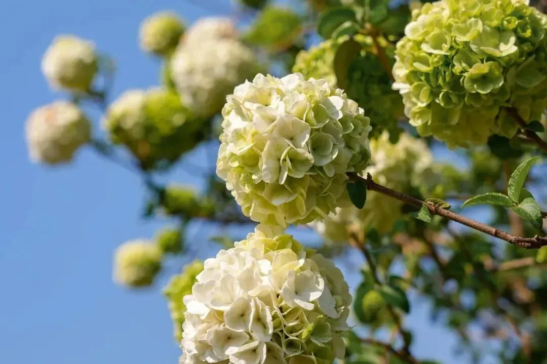 木绣球拥簇枝头,莹润如玉