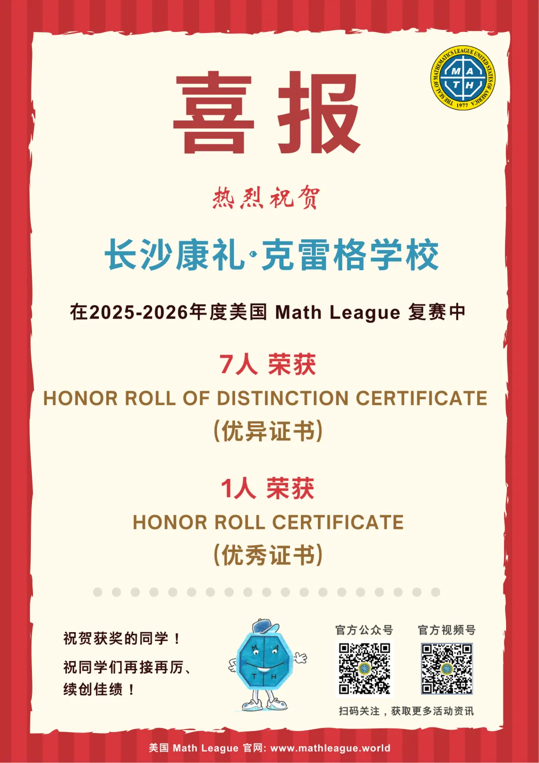 美国数学大联盟:斩获7金1银,学子在全英文数学思维挑战中脱颖而出。
