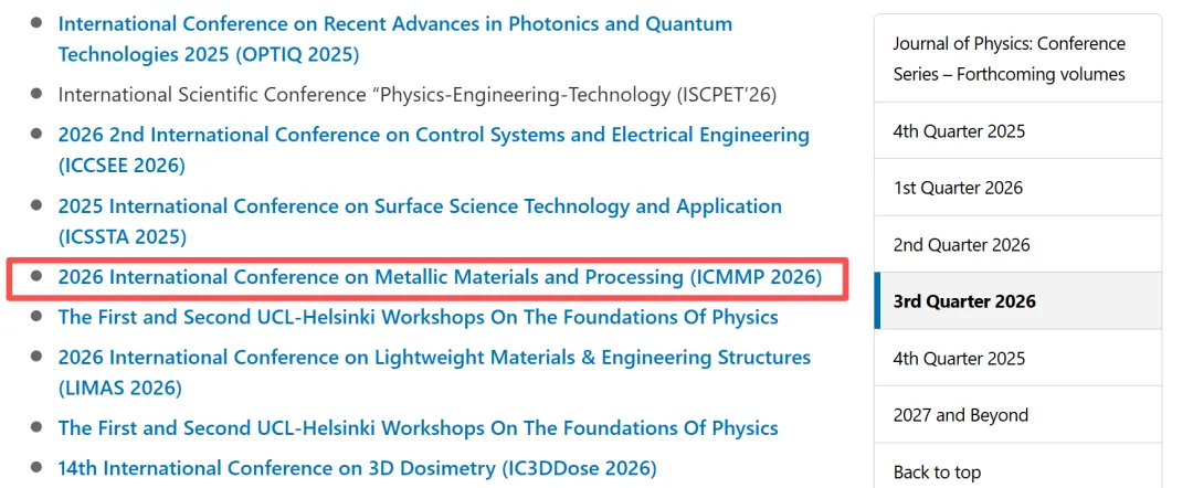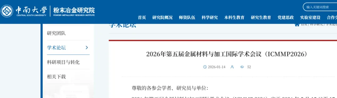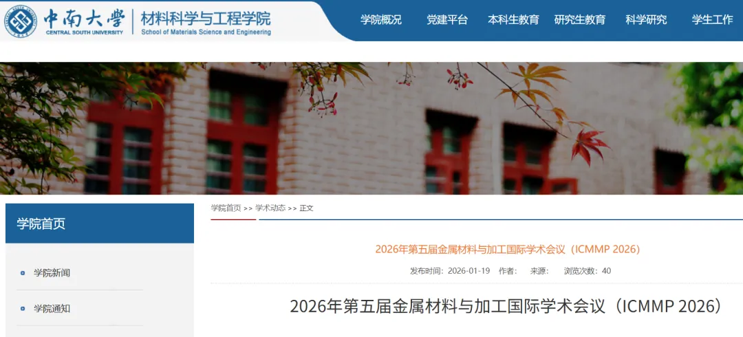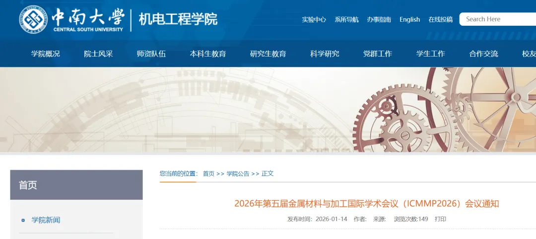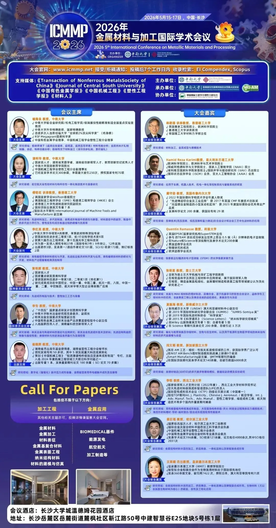 全文在线投稿:【中南大学 &香港理工大学主办|院士、会士云集】2026年第五届金属材料与加工国际学术会议 (ICMMP 2026)-论文投稿